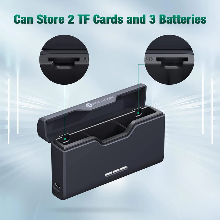¿Cansado de cargar con múltiples cables y adaptadores? Este cargador incluye todo lo que necesitas: un cable tipo C y clips de batería para modelos antiguos. Su diseño compacto no solo carga, sino que también almacena y protege tus baterías y tarjetas TF, manteniendo todo organizado y seguro. Con protecciones integradas contra sobrecargas y cortocircuitos, tu equipo está siempre a salvo.