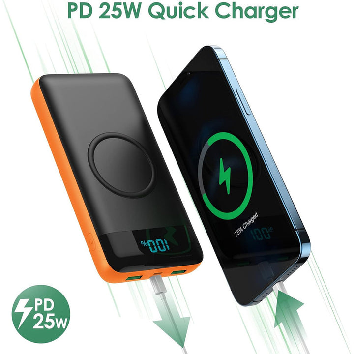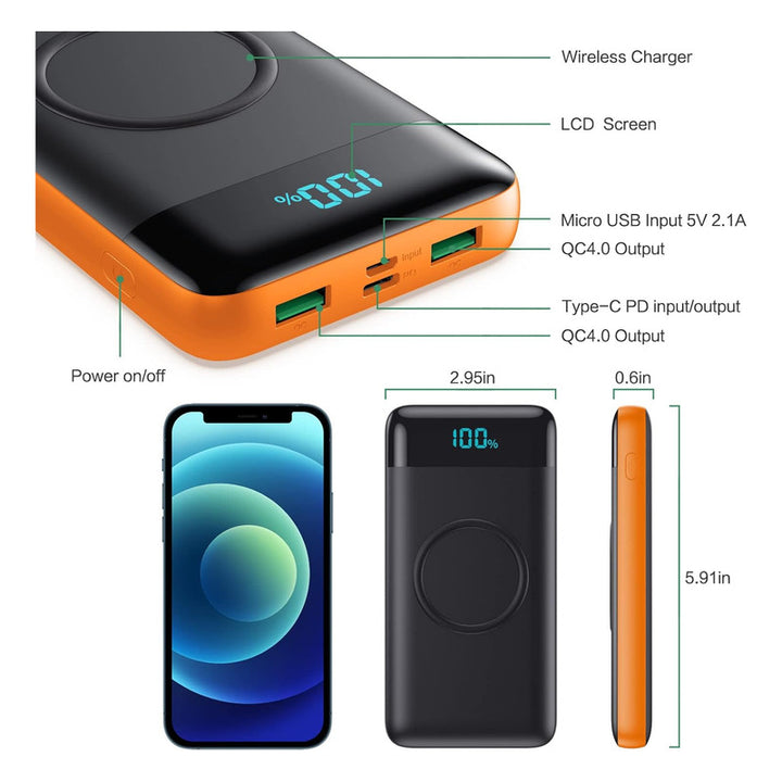 Pero eso no es todo. ¿Te parece complicado manejar tantos cables? Con su capacidad de carga inalámbrica de hasta 15W, adiós a los molestos cables. Simplemente coloca tu dispositivo sobre el cargador y observa cómo la magia sucede. La potente tecnología de carga rápida QC 4.0 y PD de hasta 25W asegura que tengas tu teléfono al 100% en solo 1.5 horas. ¿No es increíble?