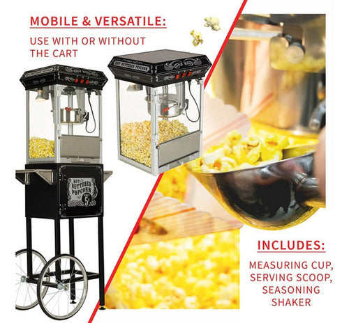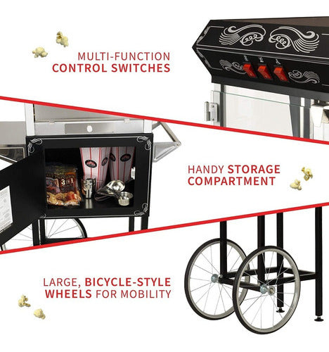 Carro Maquina Crispetera Palomitas De Maiz Negra 8 Oz Profesional