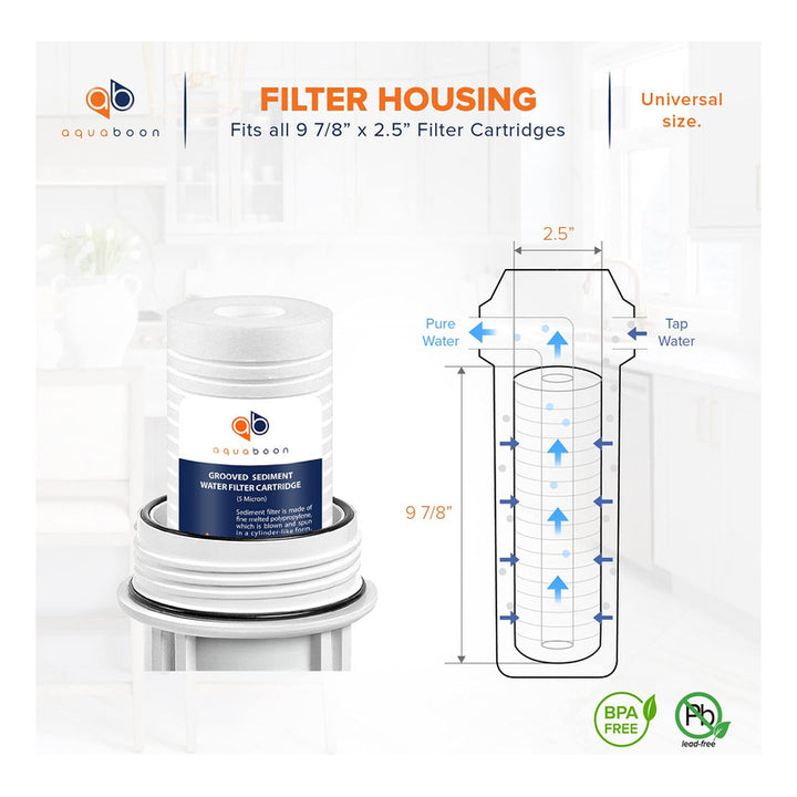- Compatible con la mayoría de los sistemas de filtración de agua de 10 x 2.5 pulgadas.