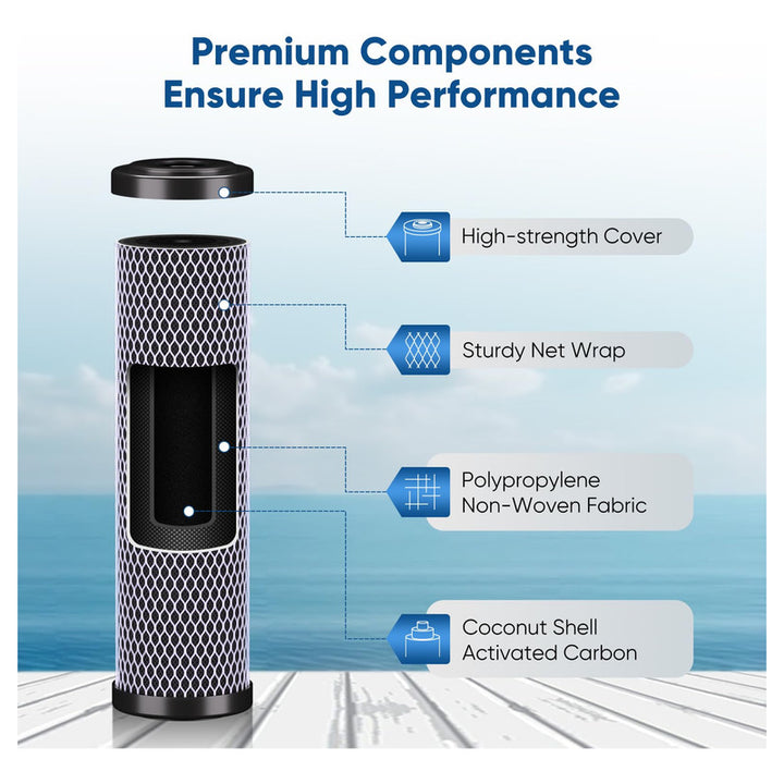 El material premium, un bloque de carbón activado de cáscara de coco, asegura no solo una filtración más fina, sino también una capacidad de absorción inigualable, ¡transformando la calidad del agua en historias de bienestar compartidas en casa! 🏡