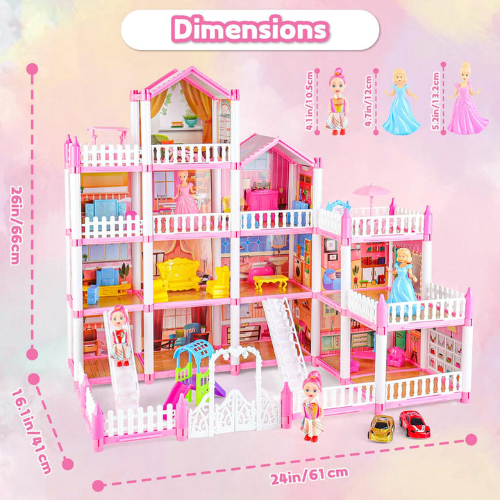 Casa De Muñecas Princesa 4 Pisos Con 16 Habitaciones Y Accesorios Para Niñas