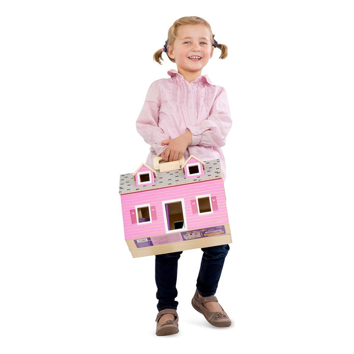 Casa De Muñecas De Madera Plegable Portátil Con Figuras Y Muebles Melissa & Doug