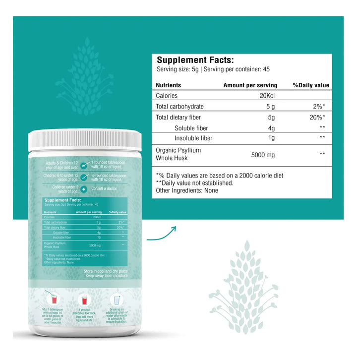 - 🛡️ Protege Tu Corazón: Estudios demuestran que el psyllium ayuda a mantener niveles saludables de colesterol.
