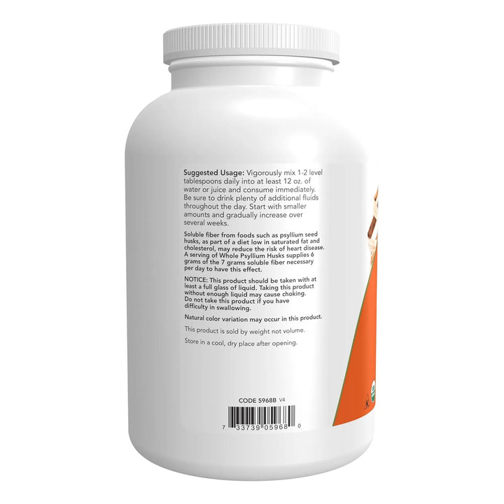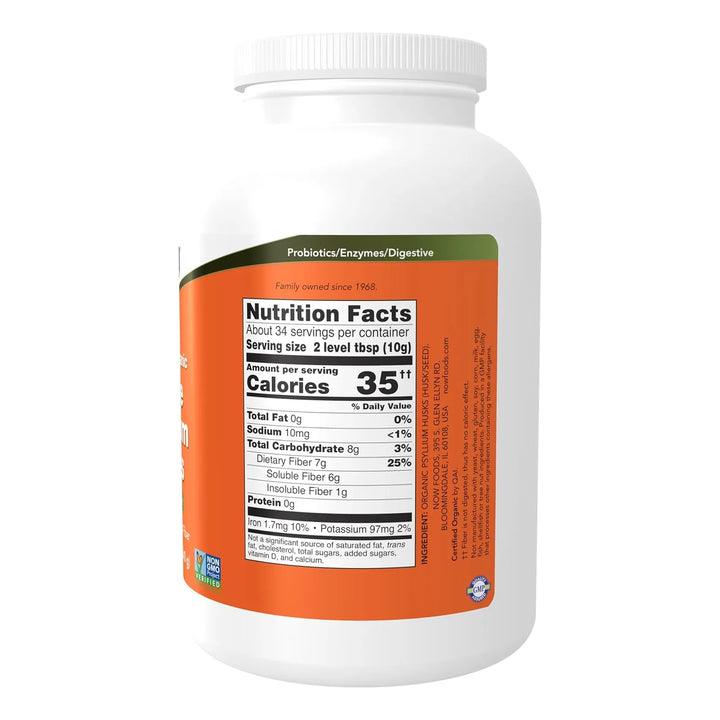 Cascaras De Psyllium Organicas Enteras Fibra Soluble 340 Gr NOW Suplementos