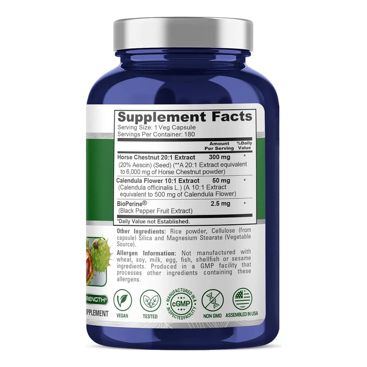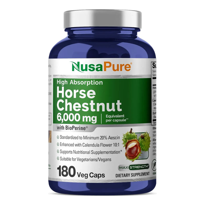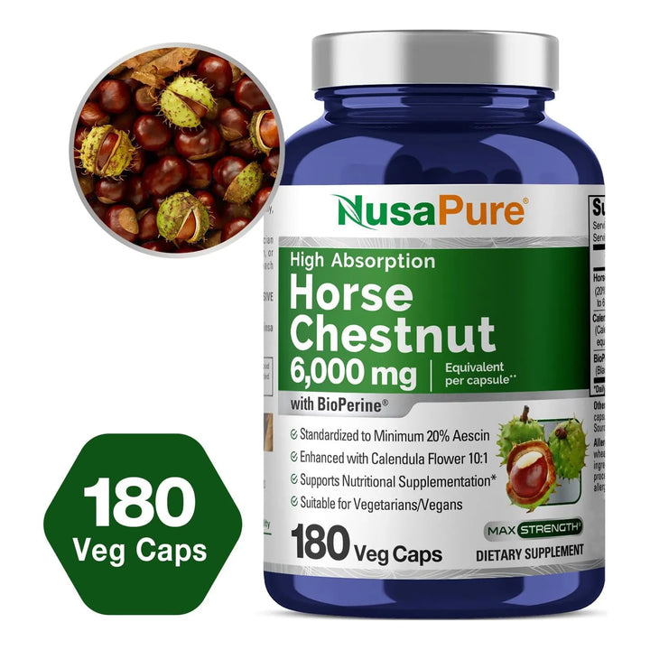 Castaño De Indias 6000mg 180 Cápsulas Vegetales Extracto 20 1 Con Bioperine Y Caléndula