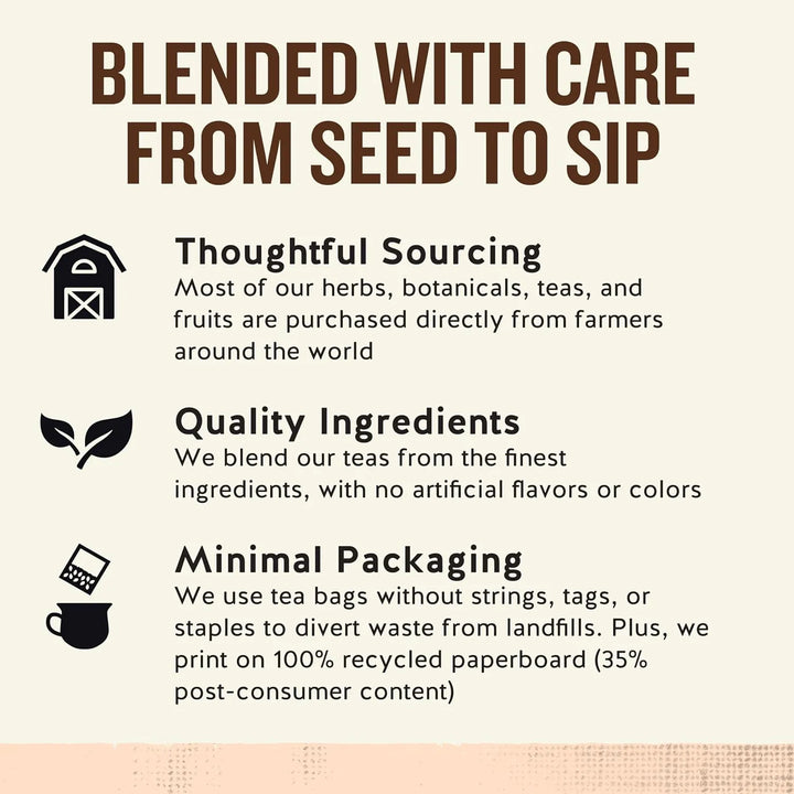 El secreto está en su cuidadosa selección de ingredientes y su proceso de preparación. Cada bolsita contiene una mezcla equilibrada de hierbas y frutas que, al infusionarse en agua caliente, liberan sus sabores y propiedades naturales. Para el té caliente, sumerge una bolsita durante 4-6 minutos. Si prefieres té helado, duplica la cantidad y sirve sobre hielo. ¡Así de simple!
