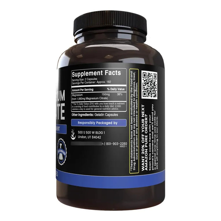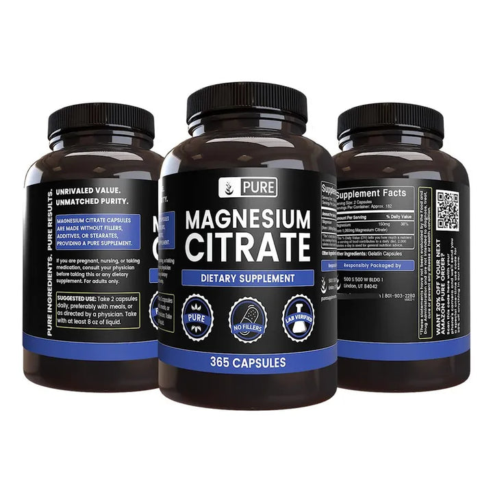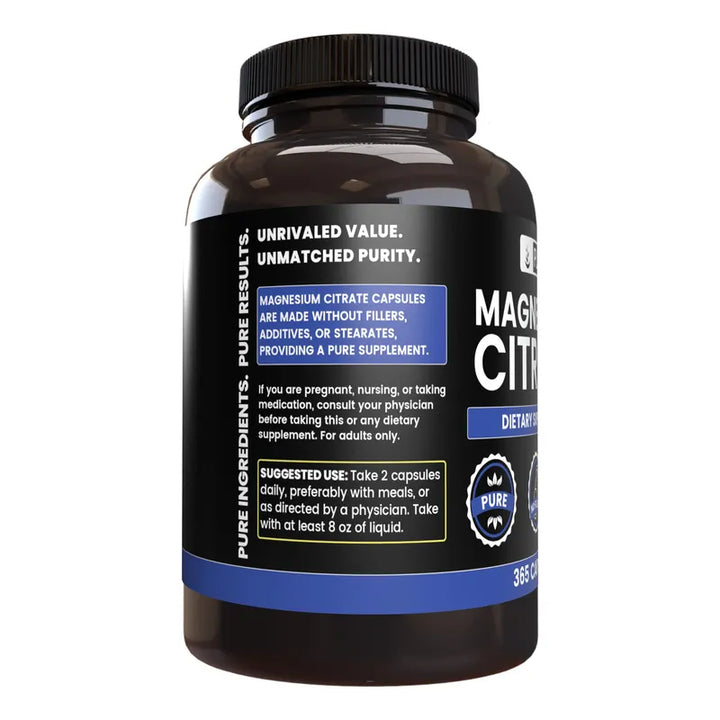 Citrato De Magnesio 365 Cápsulas Sin Rellenos Puro Y Natural