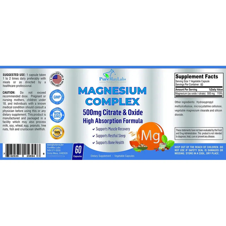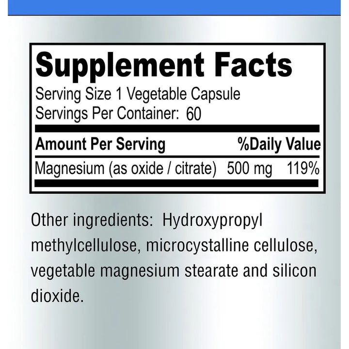 - 500 mg de citrato de magnesio y óxido por cápsula 🌟