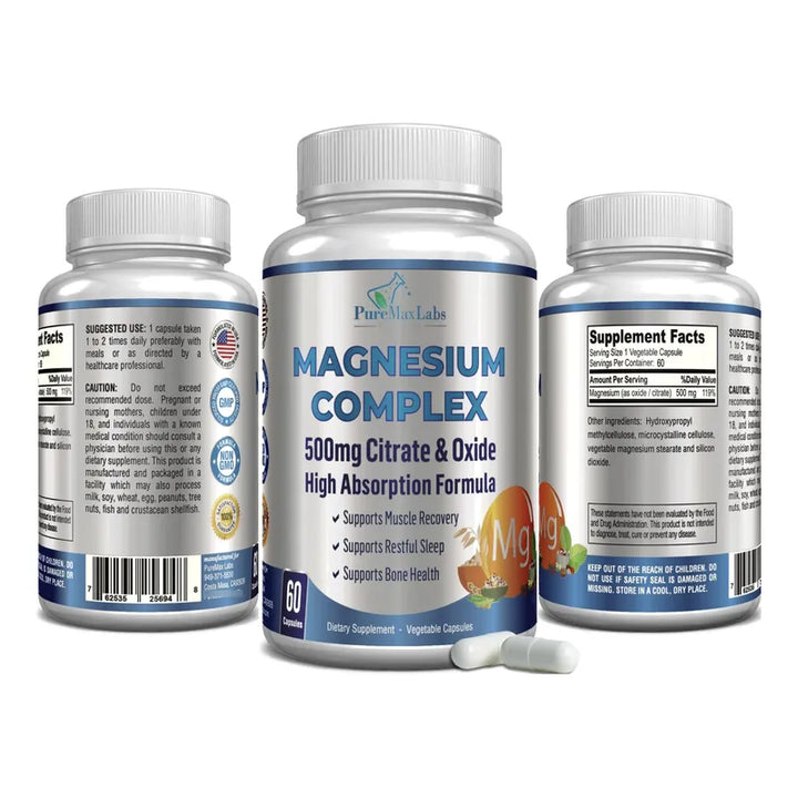 Citrato De Magnesio Alta Absorción 500 Mg Para Sueño Y Alivio De Calambres