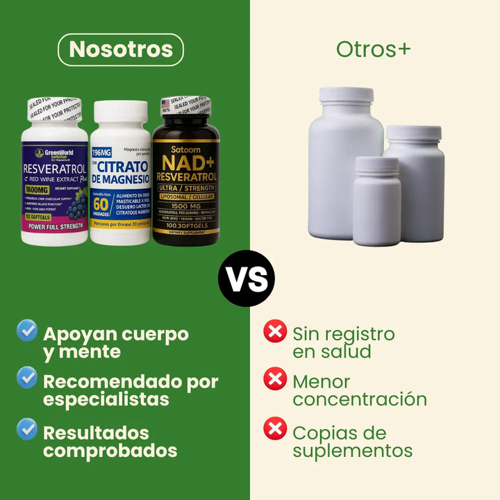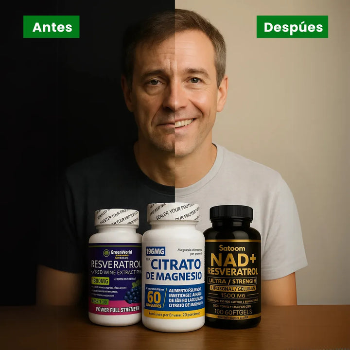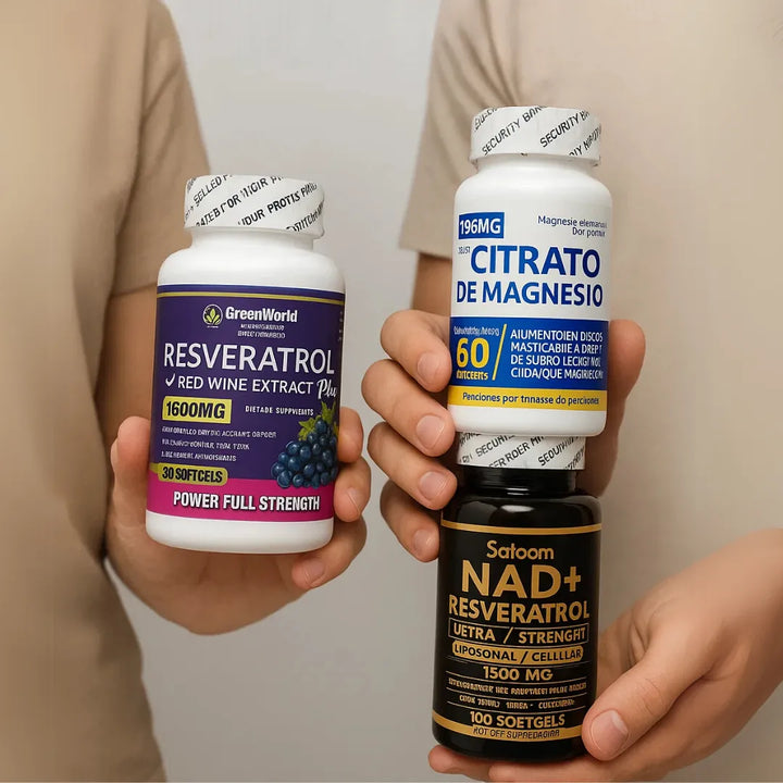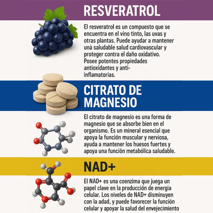 Combo NAD+ Resveratrol y Magnesio Citrato 3 Suplementos para Energía y Salud Celular