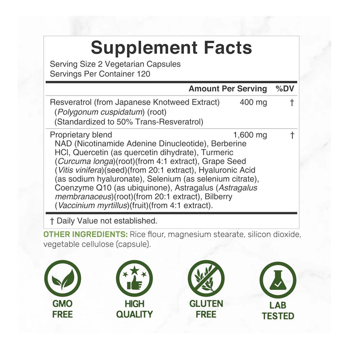 - Combate el envejecimiento celular con una dosis potente de 2000 mg de resveratrol 🌟