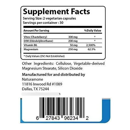 Cada cápsula contiene una poderosa combinación de ingredientes clínicamente estudiados, como el Vitex (Agnus Castus), el DIM (Diindolilmetano), vitamina B6 y magnesio, trabajando en sinergia para apoyar tu bienestar hormonal desde la raíz. No es solo un suplemento más; es tu aliado para días más ligeros, una piel más clara y un ciclo menstrual armonioso.
