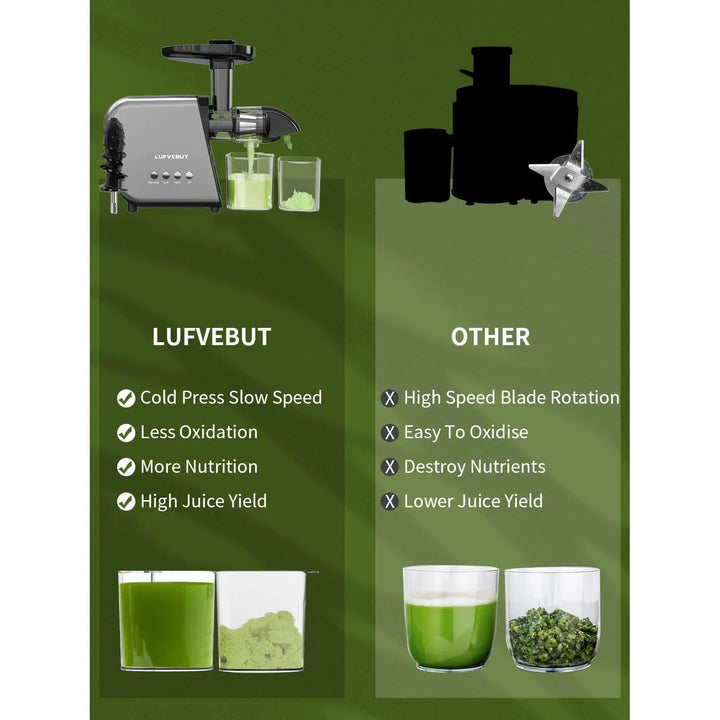 Imagina despertar cada mañana con un jugo fresco, lleno de nutrientes y sabores intensos, preparado en cuestión de minutos. El extractor de jugo LUFVEBUT no es solo una máquina, es tu aliado para una vida más saludable. Con su tecnología de prensado en frío, extrae hasta la última gota de jugo de tus frutas y verduras favoritas, conservando todas las vitaminas y minerales que tu cuerpo necesita. ¿Sabías que los jugos hechos con extractores centrífugos pierden hasta un 70% de sus nutrientes por el calor generado? Con LUFVEBUT, eso es cosa del pasado.