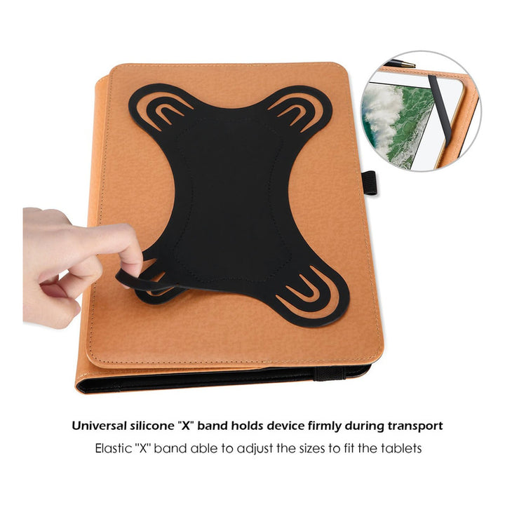 - Adaptabilidad Superior: Las bandas elásticas en "X" se ajustan para adaptarse a tablets de 9 a 10.1 pulgadas con firmeza.