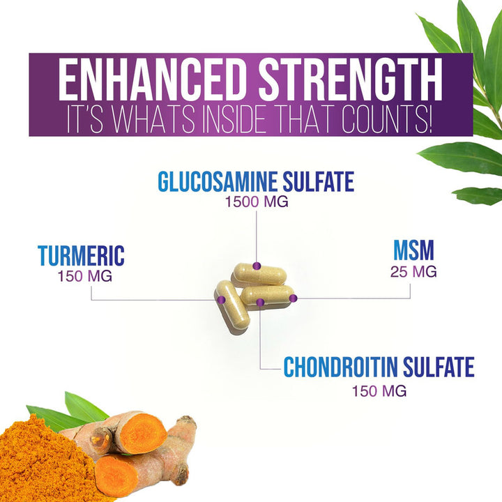 La Glucosamina ayuda a formar el líquido amortiguador de las articulaciones, la Condroitina aporta elasticidad y la Cúrcuma junto al MSM actúan como antiinflamatorios naturales, todo trabajando de la mano para brindarte articulaciones saludables y fuertes.
