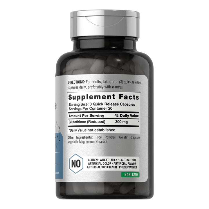 - Fórmula Premium: Cada cápsula contiene 300 mg de glutatión de rápida liberación, asegurando una absorción eficiente en tu organismo. 💊
