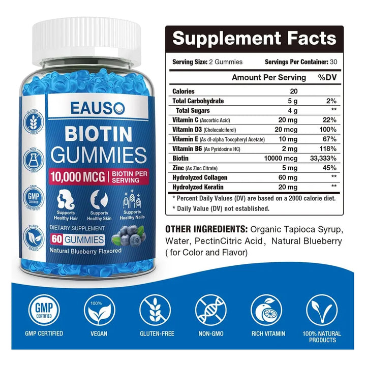 Imagina sentirte confiado cada vez que miras en el espejo, ver un cabello más fuerte, una piel más luminosa y uñas brillantes. Con las gomitas de biotina de 10,000 mcg, esa imagen puede ser tu realidad. Estas gomitas no solo proporcionan biotina, un nutriente esencial, sino que lo hacen de una manera deliciosa y conveniente.