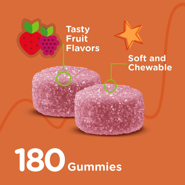 Imagina la tranquilidad de saber que tus hijos reciben nutrientes esenciales de una manera que les encanta. Gracias a su delicioso sabor a frutas, estas gomitas son la forma más rápida de asegurarte de que obtengan su dosis diaria necesaria. No más peleas a la hora de tomar vitaminas, ¡estas gomitas serán su momento favorito del día! 😋🍬