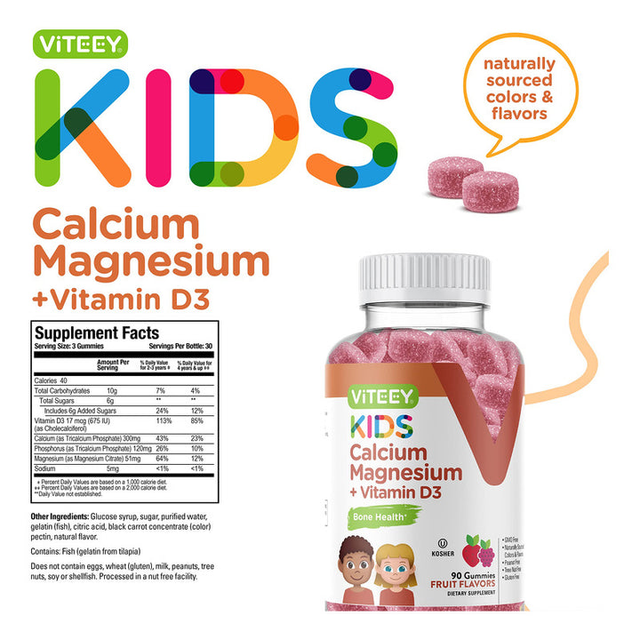 Preparar a tus hijos para un futuro saludable nunca había sido tan sencillo. Con un suministro de dos meses por bote, estas gomitas garantizan que tus hijos obtengan 300 mg de calcio, 51 mg de magnesio y 17 mcg de vitamina D3 en cada porción de tres gomitas. Además, con la certificación Kosher, tienes la confiabilidad de un producto creado bajo los más estrictos estándares de calidad. 🤝🔍