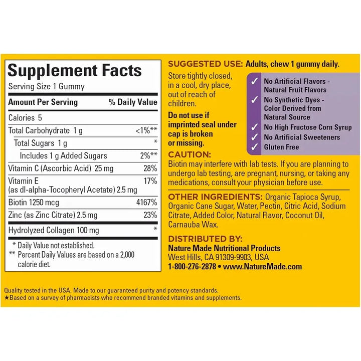 Recomendadas por farmacéuticos, estas gomitas de la marca Nature Made no solo satisfacen tus expectativas, sino que superan los estándares de calidad. Y aunque estas declaraciones no han sido evaluadas por la Administración de Alimentos y Medicamentos, la confianza de miles de clientes satisfechos habla por sí sola.