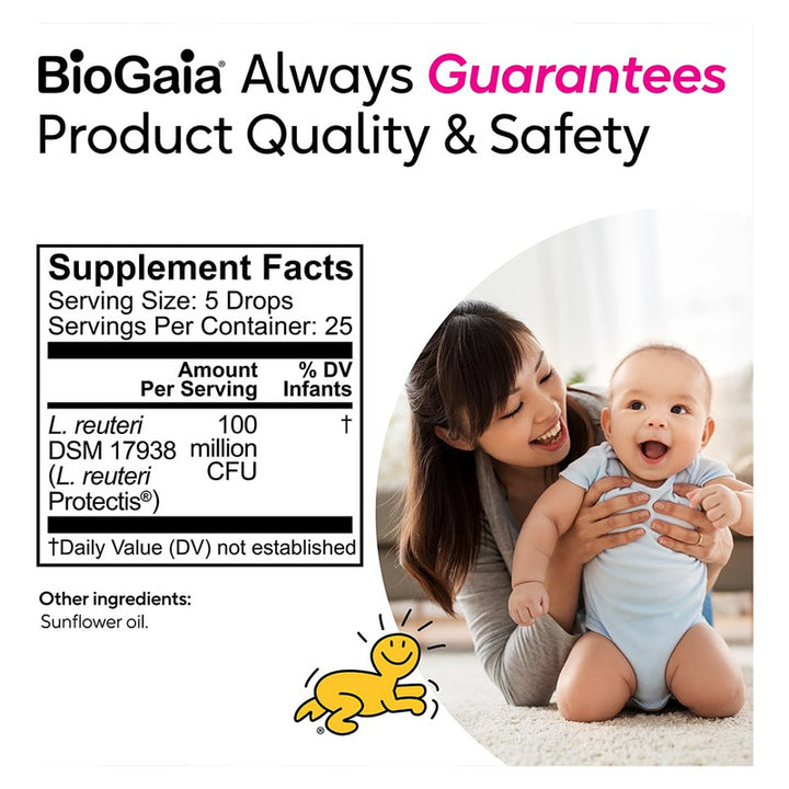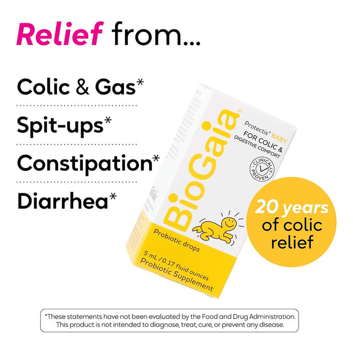 Con más de dos décadas de experiencia, estas gotas probióticas han demostrado ser efectivas para relajar a bebés con estómagos sensibles. Contienen probióticos similares a los que se encuentran de manera natural en la leche materna y contribuyen a una digestión más suave, tranquilizando a tu bebé sin el uso de químicos agresivos.