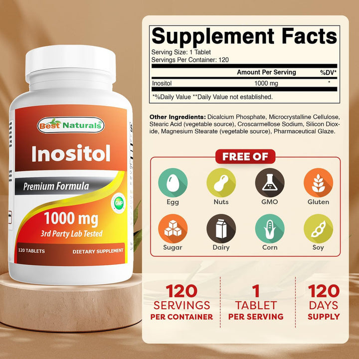 Inositol 1000 Mg Alta Pureza Calidad 120 Tab Función Plus