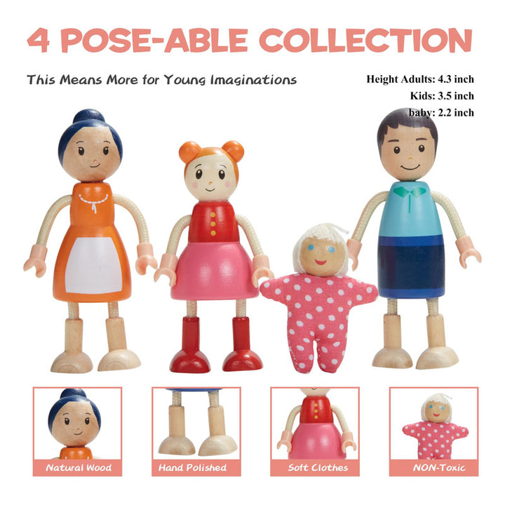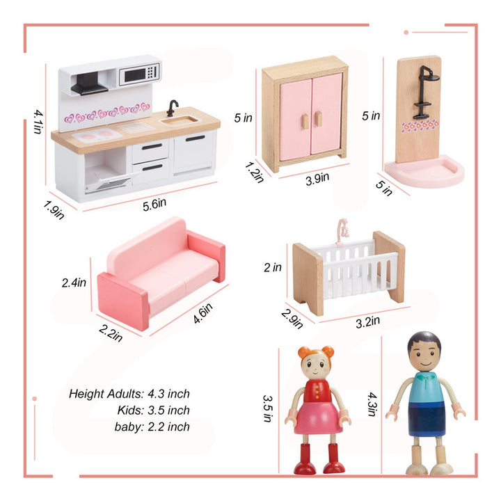 Juego De Muebles De Madera Para Casa De Muñecas 36 Piezas Con 4 Figuras Familiares
