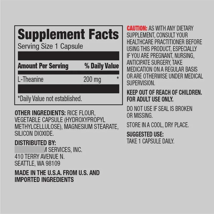 L-Teanina 200 Mg 60 Cápsulas Dos Meses De Suministro Relajación Natural