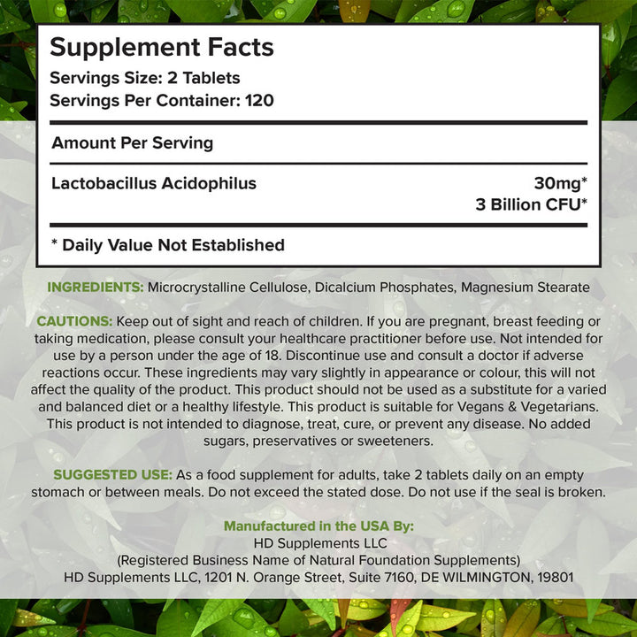 Descubre el secreto para una salud intestinal óptima con nuestro increíble suplemento de Lactobacillus Acidophilus. Con 240 tabletas, cada una conteniendo 3 mil millones de UFC, este probiótico es tu aliado perfecto para mantener el equilibrio digestivo que tanto anhelas.