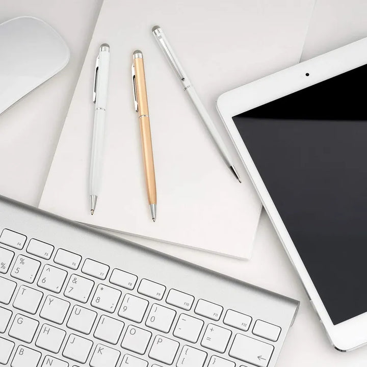 Estos lápices no solo son un accesorio elegante; son una solución diseñada para optimizar tu experiencia con cualquier dispositivo de pantalla táctil. Fabricados con un material de aluminio duradero, te prometen longevidad y resistencia sin comprometer el estilo.