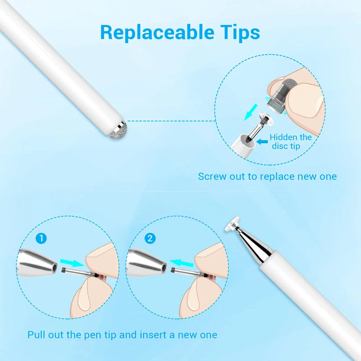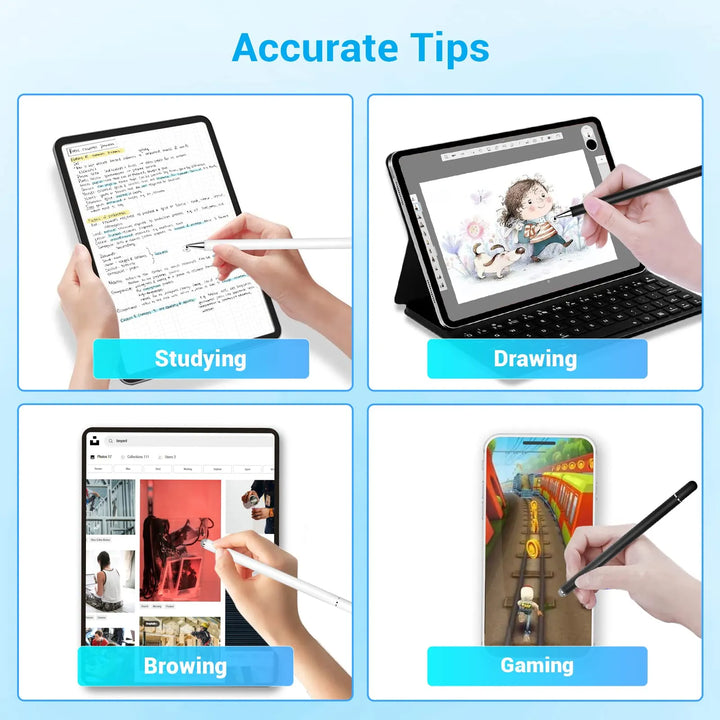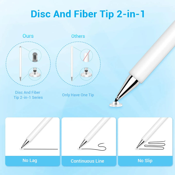 - 🔋 Diseño 2 en 1: Dos puntas en un solo lápiz: una para dibujo preciso y otra para navegación suave.