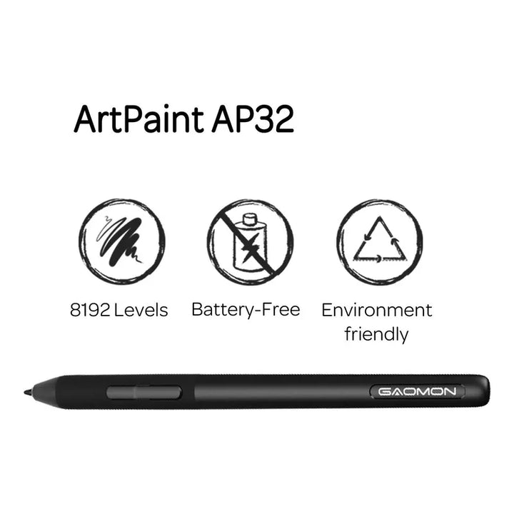 El Art Paint AP32 está diseñado para funcionar con tabletas gráficas específicas (PD2200/S620/S630/M10KPRO/M106KPRO/M1220/M1230), permitiendo una interacción directa y precisa. Al captar hasta 8192 niveles de sensibilidad a la presión, cada movimiento que realices se trasladará al lienzo digital con extrema exactitud.