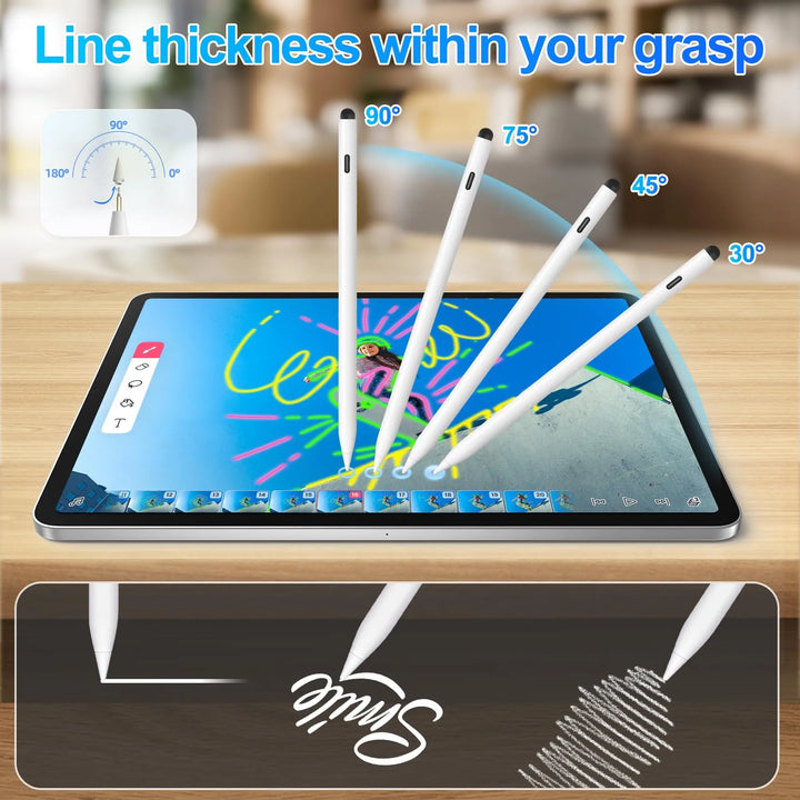 Este lápiz capacitivo utiliza tecnología avanzada para detectar la presión y el ángulo de tu mano, replicando la experiencia de escribir o dibujar en papel. La batería de polímero de litio asegura un rendimiento constante y una carga rápida, para que siempre esté listo cuando lo necesites. Simplemente conéctalo a tu iPad mediante Bluetooth y comienza a crear al instante.
