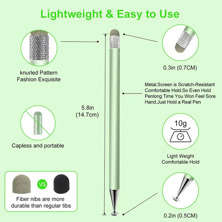 ¿Alguna vez has sentido frustración por las marcas o desconexiones al usar tus dedos en pantalla? Es hora de dejar de lado esas molestias. Con un diseño ergonómico y puntas diferenciadas, sentirás que escribes sobre papel, pero con todas las ventajas de la tecnología digital. 🖊️