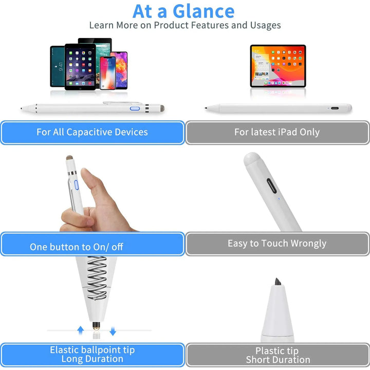 Lápiz Digital Ultrafino Blanco Compatible Con iPad iPhone Samsung Tablet