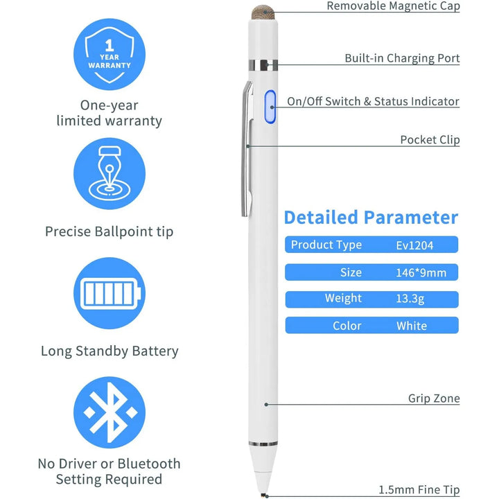 ¿Cansado de lápices digitales incómodos o que requieren conexiones complicadas? Olvídate de eso. Nuestro lápiz no necesita Bluetooth, lo que significa que puedes empezar a usarlo inmediatamente, sin configuraciones tediosas. Su punta ultrafina de 0.06 pulgadas te brinda un control excepcional, permitiéndote escribir o dibujar con una sensación natural, como si estuvieras usando un bolígrafo real. Además, su diseño ligero y ergonómico asegura que puedas usarlo durante horas sin fatiga.