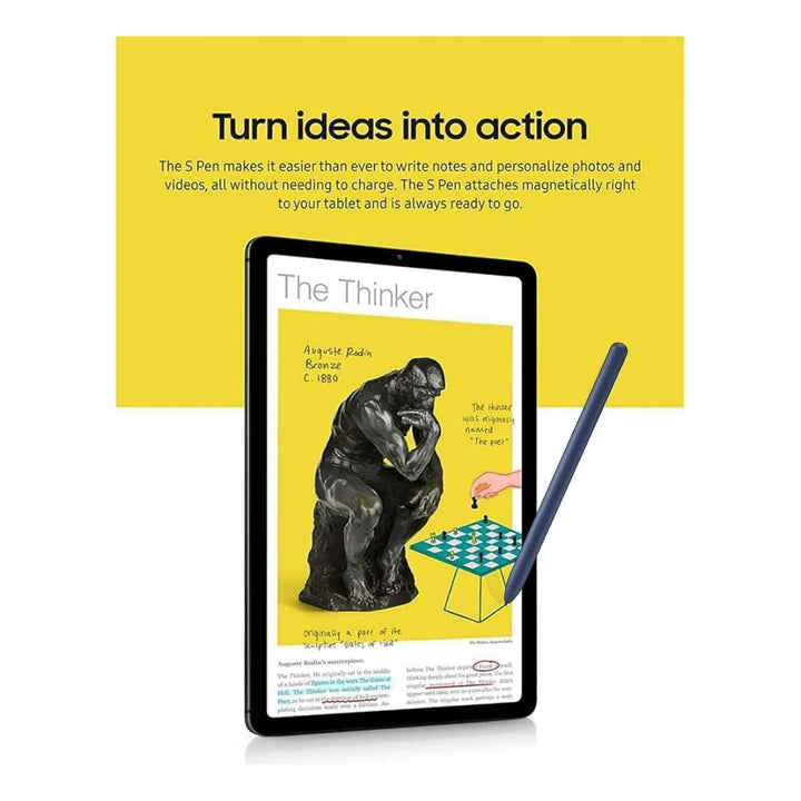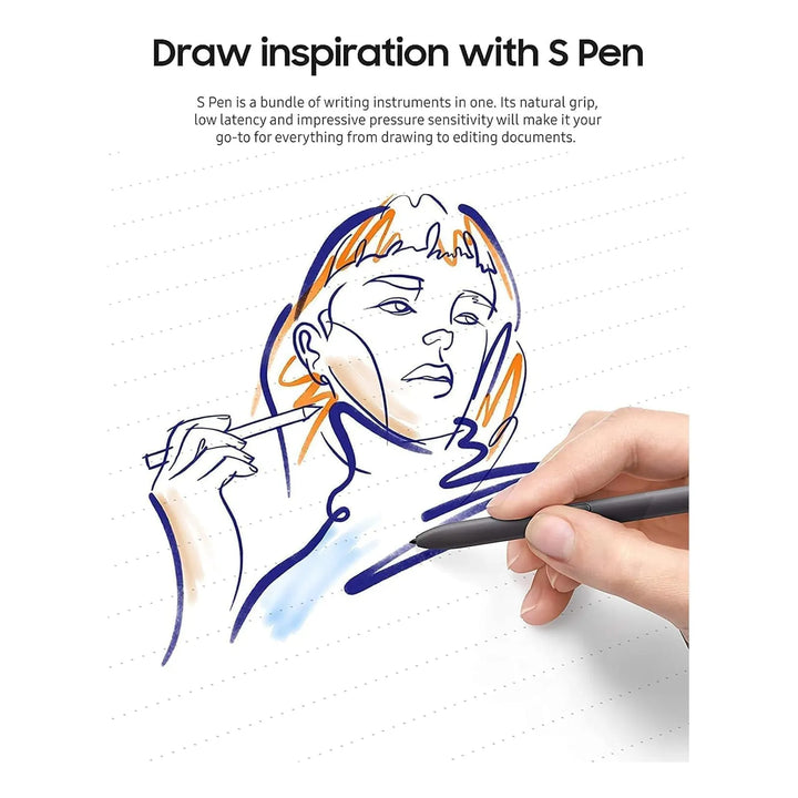 Este lápiz utiliza tecnología capacitiva para interactuar directamente con la pantalla de tu tableta Samsung, detectando la presión y el ángulo de cada trazo. Simplemente colócalo sobre la pantalla y comienza a escribir o dibujar como lo harías en papel. El botón lateral activa funciones avanzadas como el menú Air Command, permitiéndote seleccionar texto, crear notas rápidas o incluso traducir lo que escribes en tiempo real.