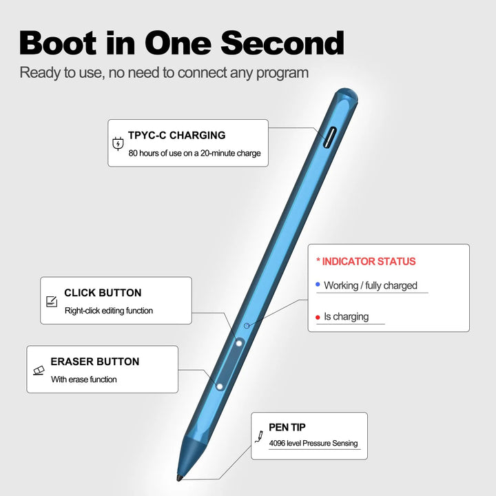 Este lápiz óptico utiliza tecnología MPP 2.0 para garantizar una conexión estable y una respuesta inmediata. La carga se realiza a través de USB-C, y la gestión inteligente de energía asegura que siempre esté listo para usar. Simplemente conéctalo a tu dispositivo compatible y comienza a crear.