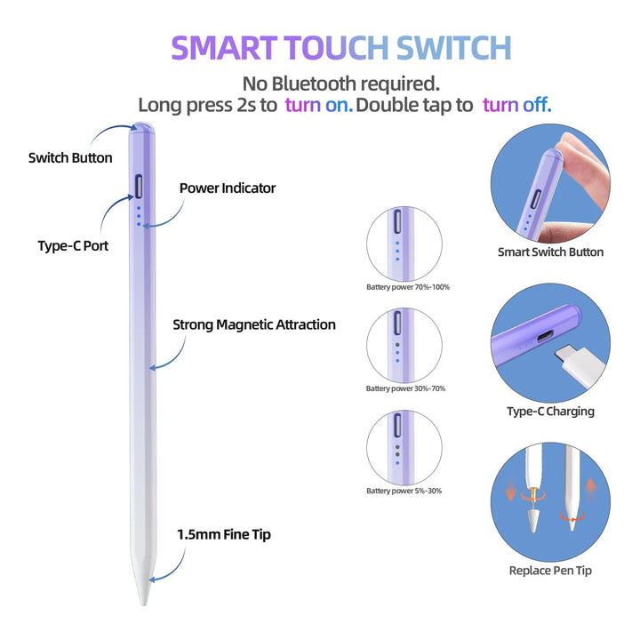 Este lápiz transforma tu iPad en un lienzo profesional gracias a su tecnología de sensibilidad a la inclinación y presión, permitiendo que cada movimiento sea capturado con precisión. La batería de larga duración y el modo de suspensión inteligente aseguran que siempre esté listo cuando lo necesites.