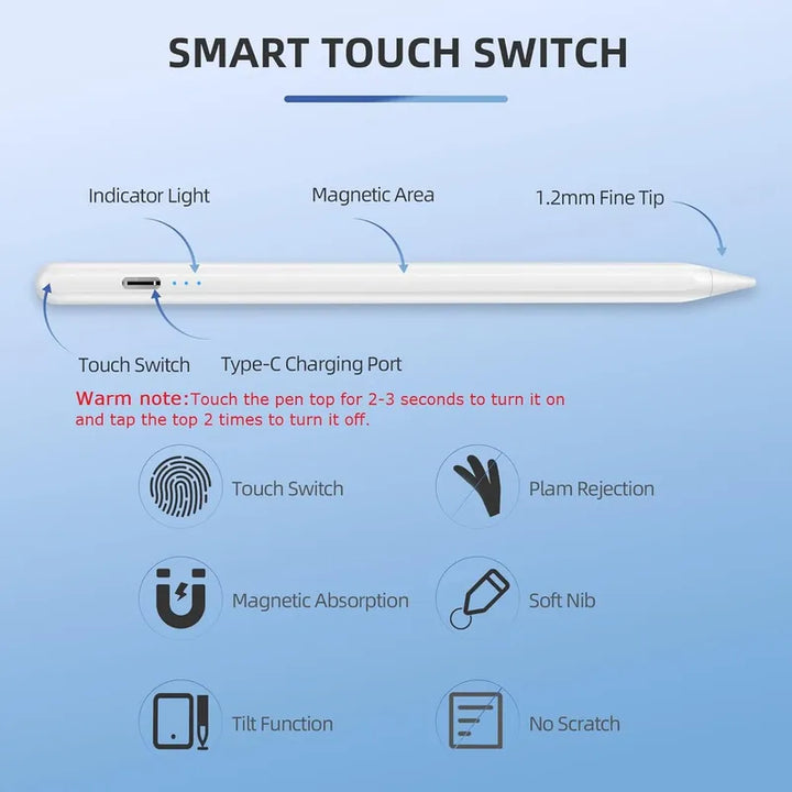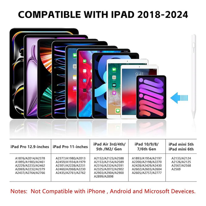 Lapiz Optico Para Ipad De 2018 A 2024 Con Rechazo De Palma Y Carga Rapida