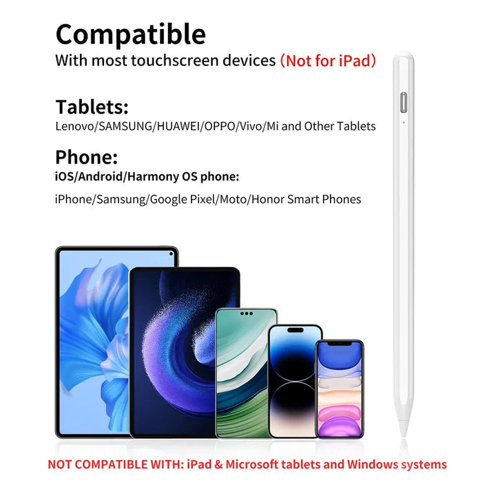 Deja de preocuparte por la compatibilidad. Este lápiz óptico es universal, ideal para la mayoría de pantallas táctiles Android y compatible con marcas destacadas como Samsung, Lenovo, Huawei, Vivo, y Mi. Aunque no es amigo del iPad, ¡es perfecto para una gran variedad de otros dispositivos! Nunca más te detendrás por limitaciones técnicas.