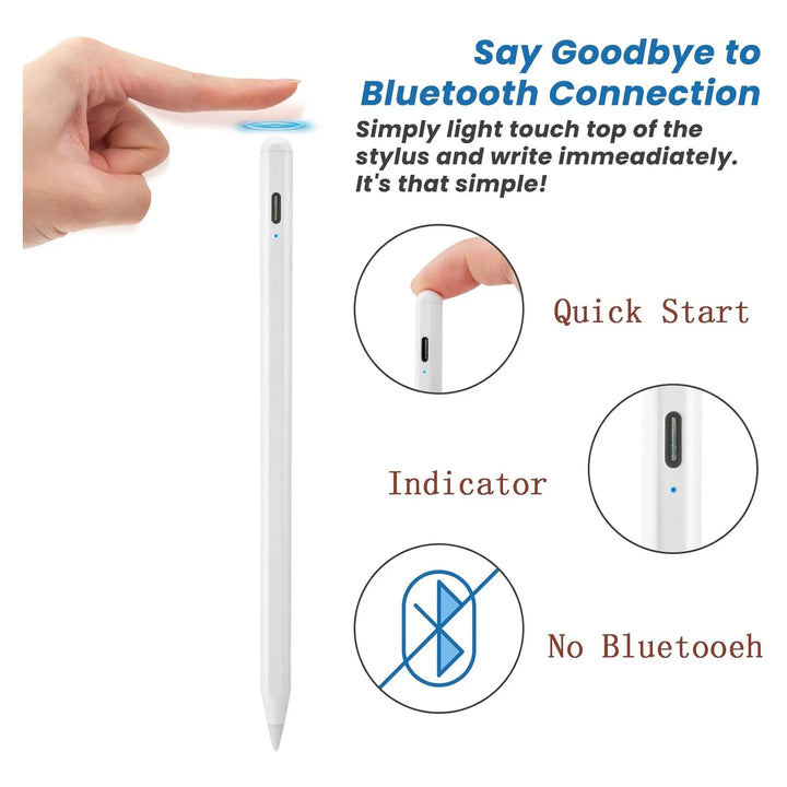 ¿Cansado de perder tiempo conectando dispositivos? Olvídate de complicaciones. Con solo tocar la parte superior del lápiz, estarás listo para comenzar. No requiere Bluetooth, lo que lo hace increíblemente fácil de usar. Su punta de plástico suave protege tu pantalla de arañazos mientras te permite trazar líneas precisas y suaves, incluso con protector de pantalla.