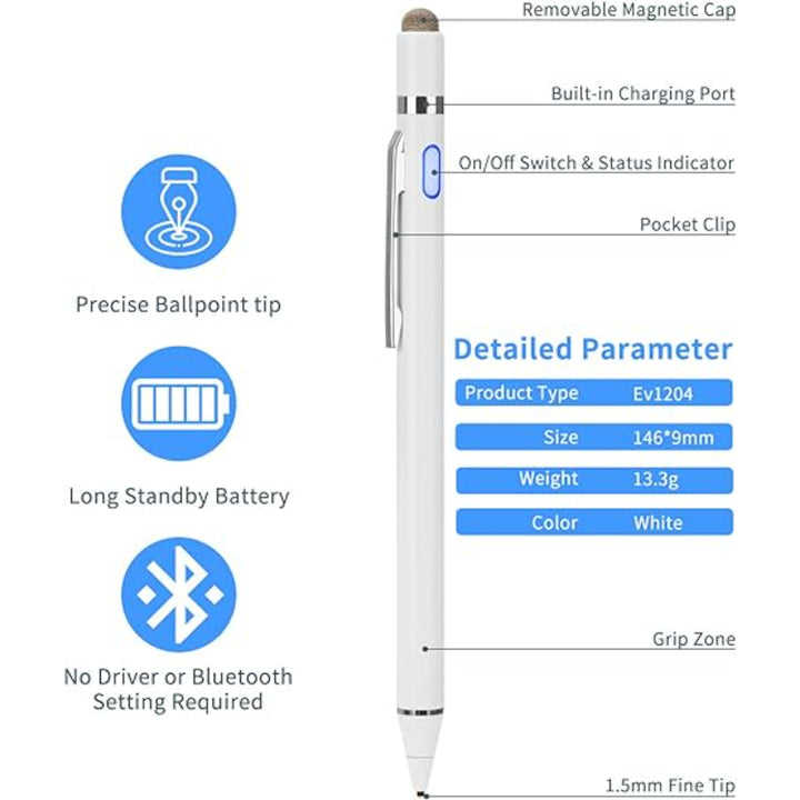 No es solo una herramienta de precisión, es compañera de largas jornadas creativas. Con una batería que soporta 8 horas de uso continuo, el lápiz óptico se asegura de que tu proceso creativo no se interrumpa, dándote la tranquilidad de saber que está siempre listo para la acción. Además, la funcionalidad de apagado automático cuida tanto tu bolsillo como el medio ambiente.