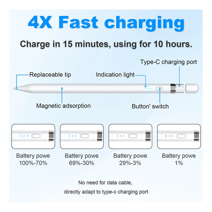Lápiz Óptico USB-C Para iPad 2018-2025 Con Sensibilidad De Inclinación Y Rechazo De Palma