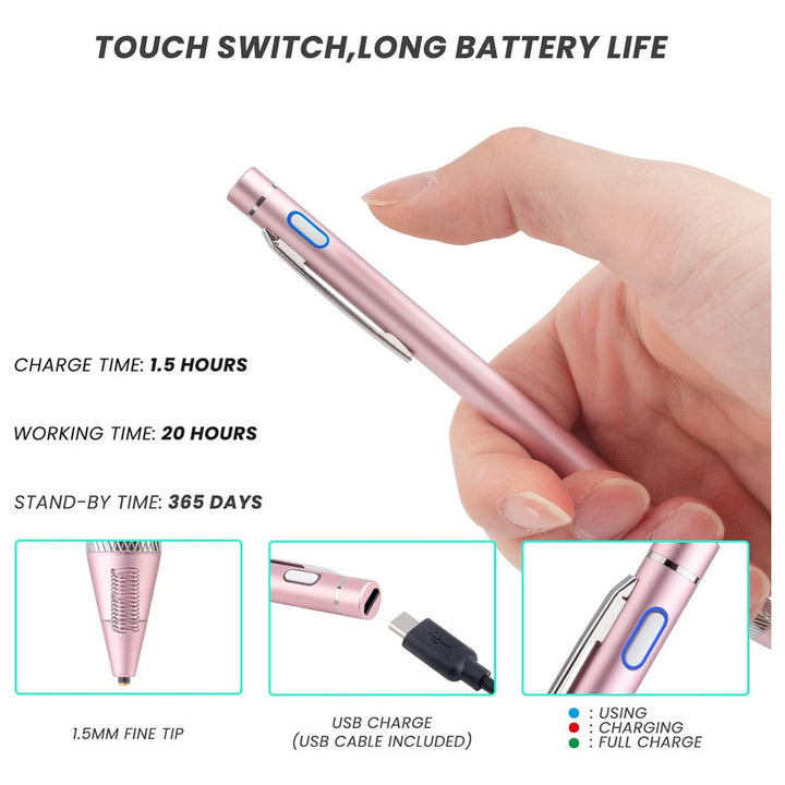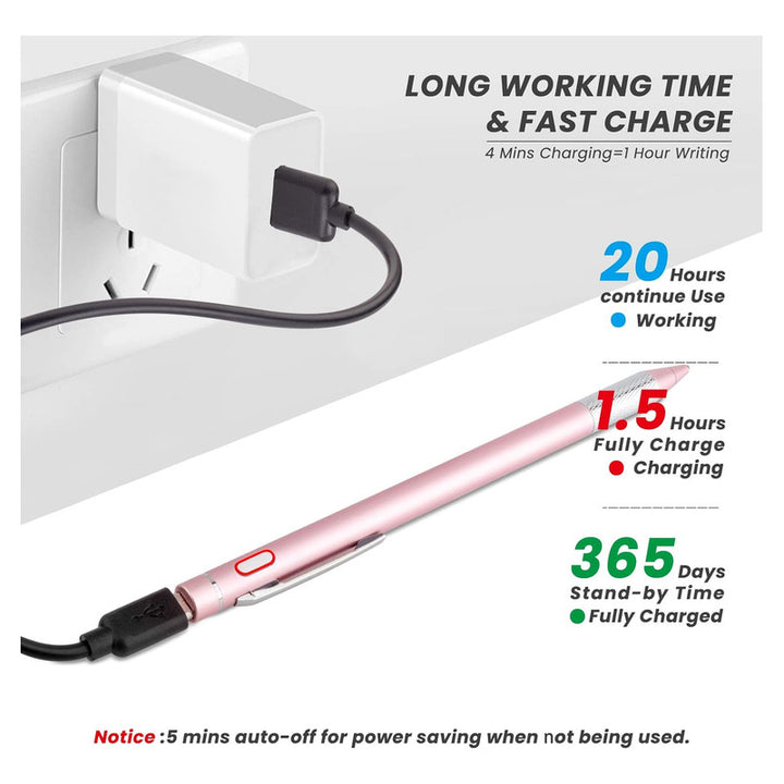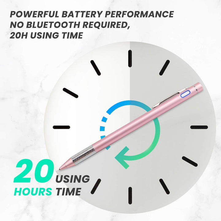La innovación va más allá de su estética. Su punta ultrafina de 0.069 pulgadas proporciona una precisión milimétrica, mientras que el cuerpo de aluminio anodizado garantiza una durabilidad y firmeza excepcionales. ¿Te preocupa la duración de la batería? Olvídate de eso. Con una carga completa de sólo 60 minutos, te ofrece hasta 20 horas de uso continuo, permitiéndote centrarte en lo que realmente importa.