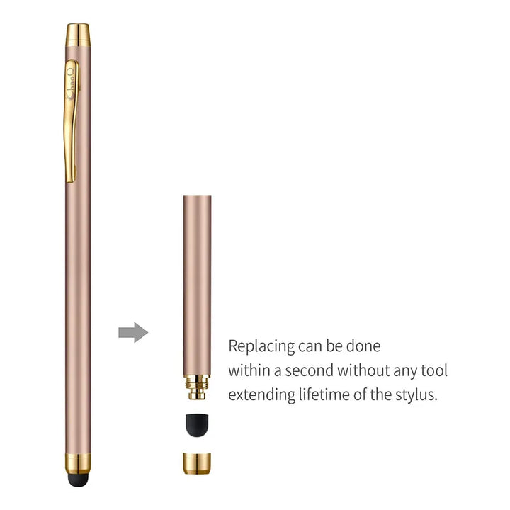Imagina un lápiz óptico de alta gama, construido con metal robusto y sin partes plásticas, diseñado para durar y ofrecer una experiencia ultra sensible. Ya no tendrás que preocuparte por la compatibilidad, porque es 100% funcional con cualquier dispositivo de pantalla táctil capacitiva. Libera tu creatividad con libertad y precisión.