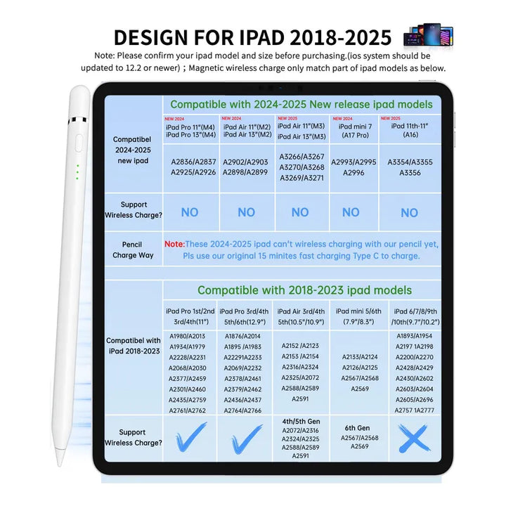 La compatibilidad es clave, y nuestro lápiz no decepciona. Ya sea que tengas un iPad de última generación o un modelo anterior, se ajusta a todos, desde el iPad mini hasta el iPad Pro. Esta total versatilidad elimina las barreras y te proporciona la libertad que necesitas para crear sin límites.