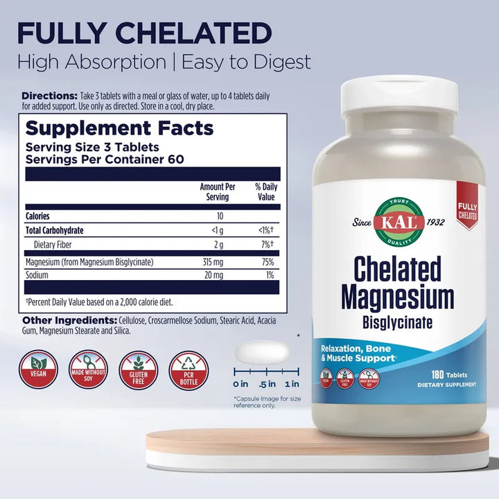 Este magnesio de alta absorción está formulado para nutrir tu cuerpo desde adentro hacia afuera. 🌿 Cada porción proporciona 315 mg de bisglicinato de magnesio, asegurando una digestión suave sin los malestares que otros magnesios suelen causar. Más que un simple suplemento, es tu camino hacia una mente tranquila y un cuerpo revitalizado.