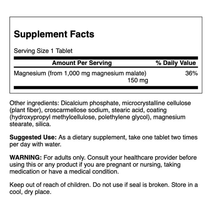 Malato De Magnesio 150Mg Elementales 1000Mg Apoyo Neuromuscular Vegetariano